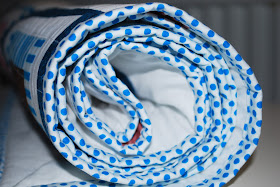 Har kommit på att det som gjorde det enklare denna gång var nog dels för att det inte var första gången och dels för att jag hade ett mycket bättre vadd. Nu använde jag ett vadd som är för kviltar, tunnt och av 80% bomull och 20% polyester. Helt klart mycket bättre och täcket blev mycket mjukare och mer följsamt.