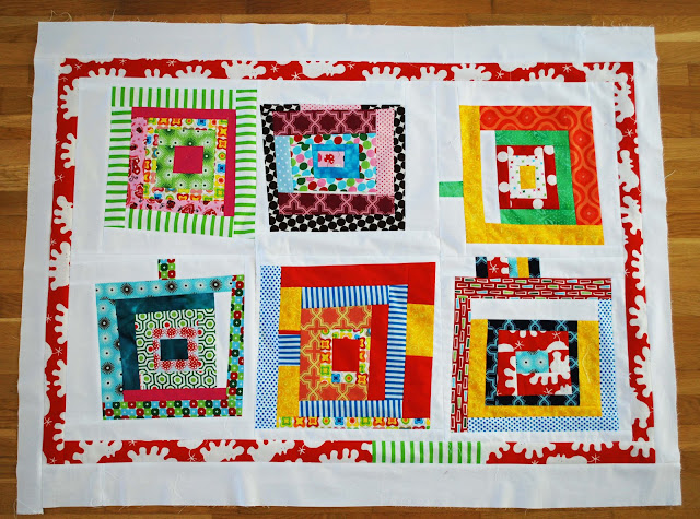 Ville dock inte lägga ner alltför mycket tid och energi på det så sydde helt enkelt ihop alla blocken jag hade gjort och sen fick det bli en röd och en vit ram runtom, med lite infällt i grönt.