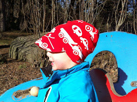 De är väldigt enkla att sy. Sydde efter mitt vanliga mössmönster och la till en skärm. För att få till det med skärmen läste jag först denna tutorial. Enkelt och snabbt.